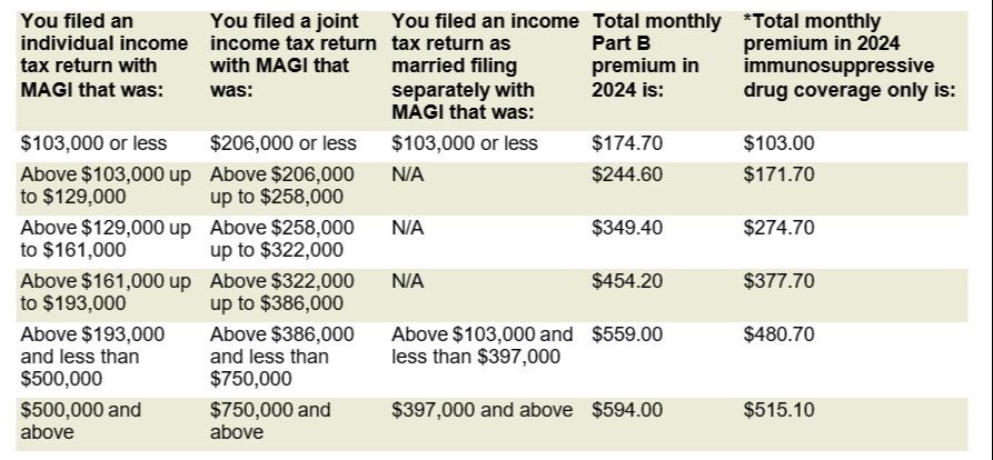 Medicare Part B (Medical Insurance) costs for 2024